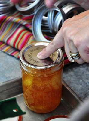 Pour jam into the sterilized jars, leaving a 1/4 inch head space,